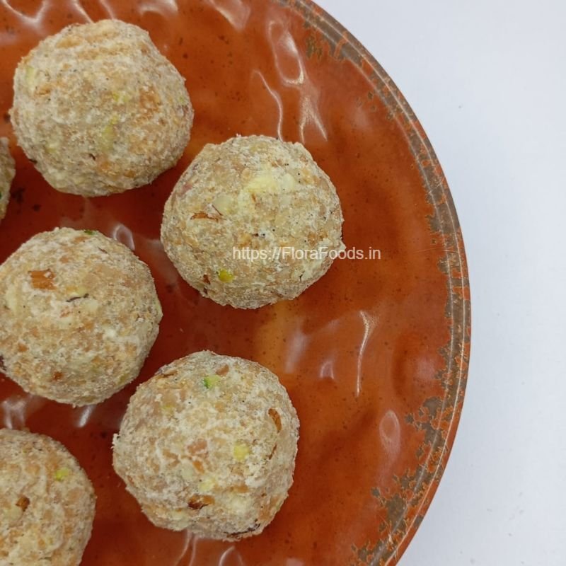 Mohan Laddu is a popular traditional sweet known for its soft texture with a light crunch. It is prepared using maida flour and chiroti rava, along with badam and cashew, which add a familiar nutty taste. Ghee and a mild hint of cardamom bring balance to the sweetness. This laddu is commonly prepared for festivals, family functions, and celebrations and is enjoyed as a classic, comforting sweet.